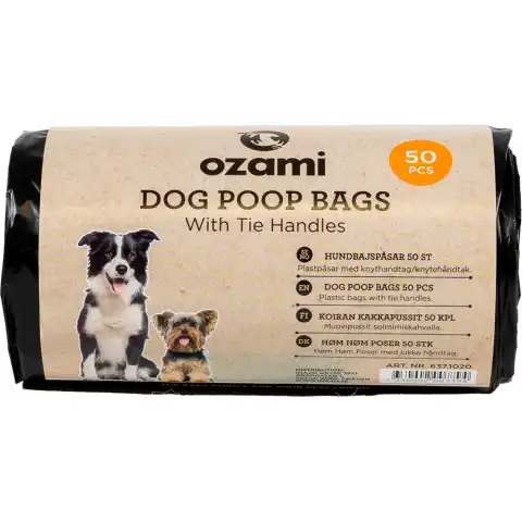 ozami Dog poop bags with tie handles GTIN: 7330002007794 19 kr Including Tax: 3.80 kr Quantity pcs Add To Cart Description 50 st påsar.