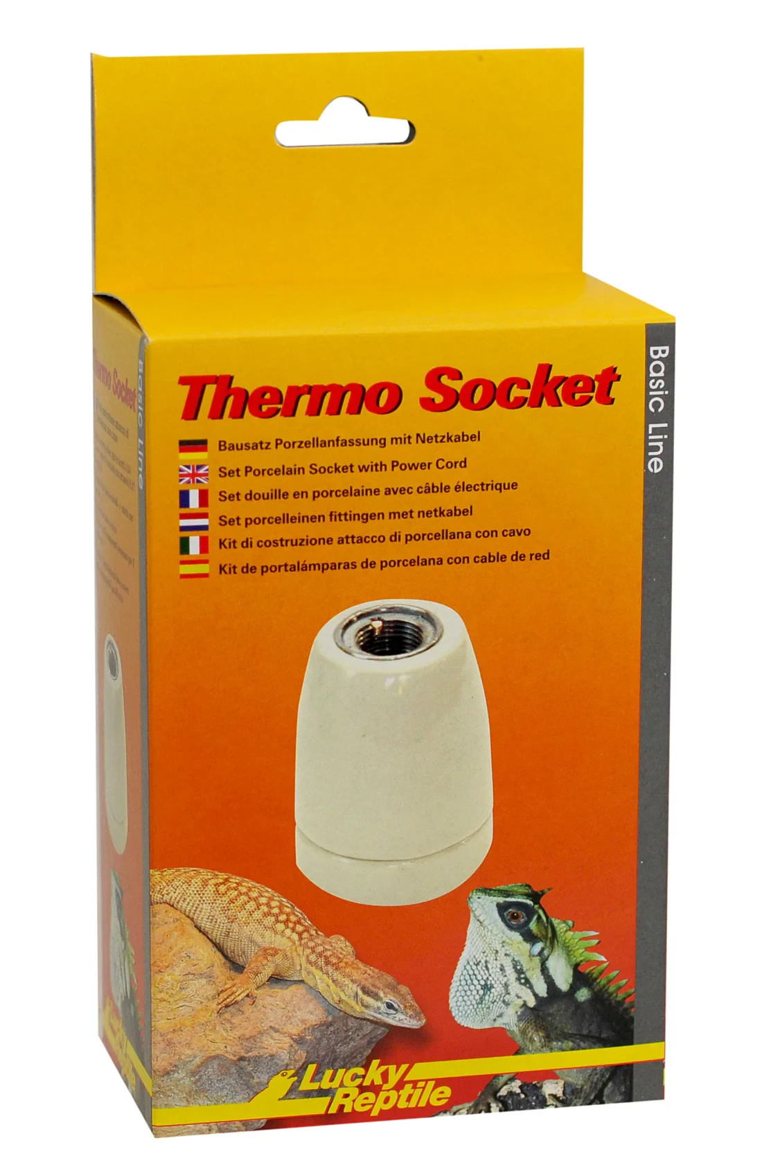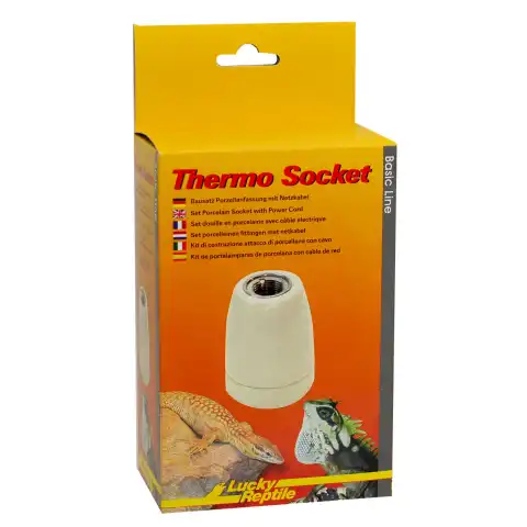 Thermo Socket inkluderar en högkvalitets porslins sockel, en på/av knapp, strömsladd med europlugg samt beroende på modell de nödvändiga skruvarna för montering i terrariumet.
