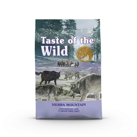 Taste of the Wild Sierra Mountain innehåller 25% råproteiner och 15% fett.
