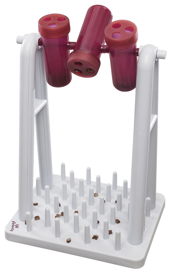 2 spel i 1 : Göm kattgodis mellan konerna på lekbrädan eller göm kattgodis i de hängande bägarna och låt katten få ut godiset själv. Det kan krävas lite övning innan katten lyckas med detta själv.