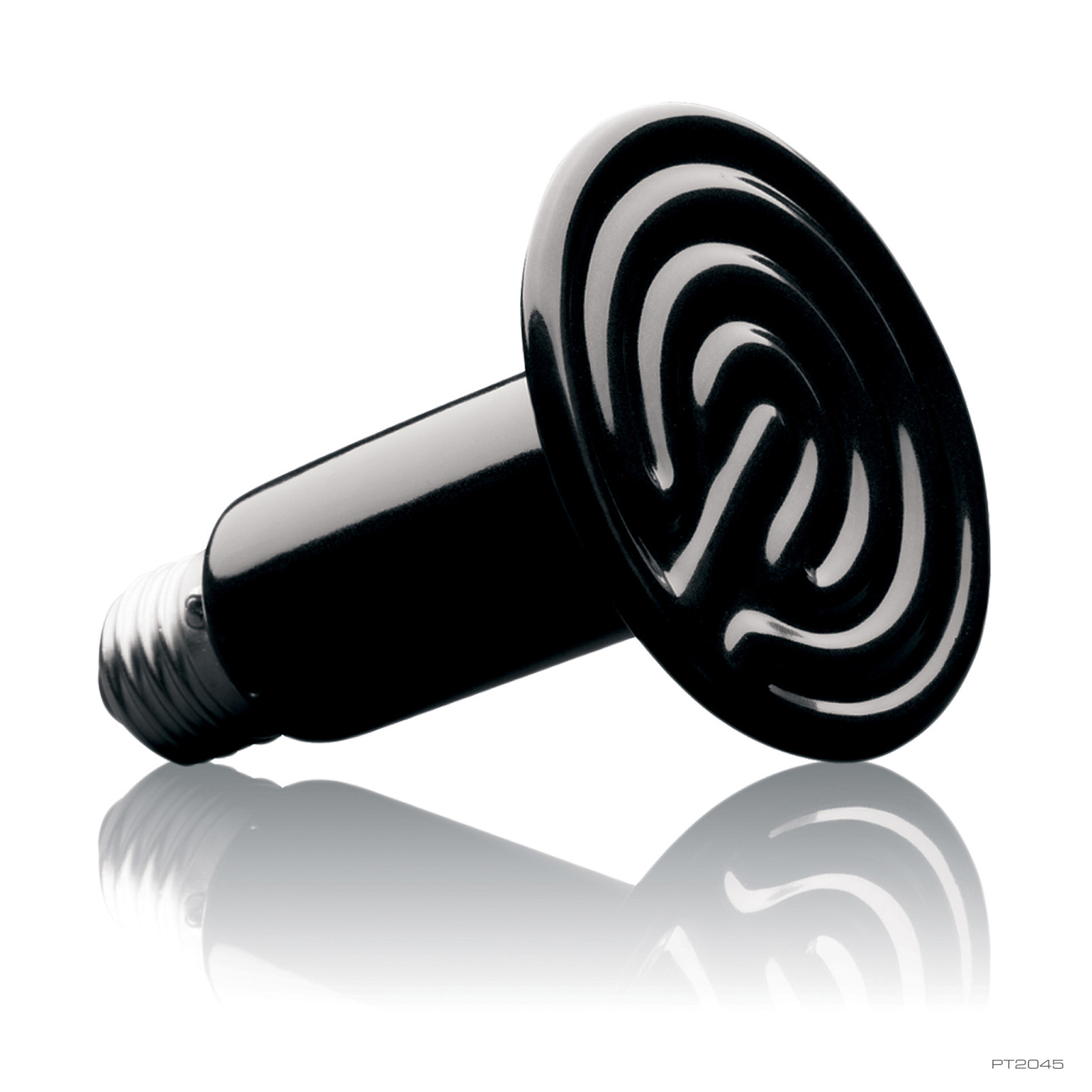 Exo Terra Ceramic Heater är en strålningsvärmekälla som skapar en naturlig solliknande värme med ett enhetligt mönster. Den långvågiga infraröda värmen som produceras av denna sändare kommer att värma reptiler mycket effektivt. Det ökar också den omgivande lufttemperaturen i terrariet. Infraröd värme tränger in i fjäll och hudvävnad, främjar hälsa och läkning eftersom den vidgar blodkärlen och ökar blodcirkulationen. Den keramiska värmaren ska endast användas med den specialdesignade Exo Terra Wire Light.